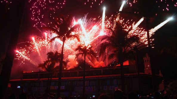 El programa en el teatro al aire libre de Los Arcos lo abrió el grupo de ballet folclórico ‘Vallarta Azteca’, que presentó diversas estampas regionales, tras lo cual se realizó la primera de dos proyecciones del espectacular mapping piromusical en la parte poniente del palacio municipal, en el que los asistentes disfrutaron de un recorrido histórico desde los orígenes de Puerto Vallarta hasta el icónico destino de playa que es hoy en día, así como de un gran espectáculo pirotécnico.