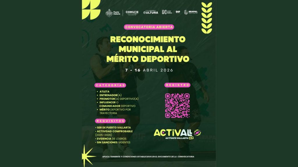 Puerto Vallarta se prepara para reconocer a sus figuras más destacadas en el ámbito deportivo. El Consejo Municipal del Deporte (COMUDE) ha abierto el periodo de registro para el Reconocimiento Municipal al Mérito Deportivo 2026, una distinción que busca premiar la constancia, el talento y la trayectoria de quienes han impulsado el desarrollo físico en la ciudad durante el último año. El periodo de registro vence este jueves 16 de abril.