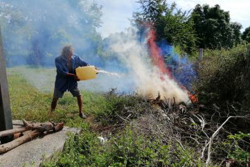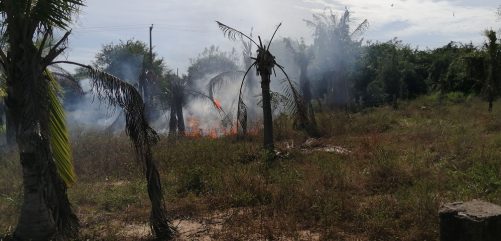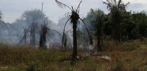 Hay varias parcelas o pequeños predios con palmares donde el mayate prieto se a encargado de matarlas y como no hay remedio para combatir esta plaga, los propietarios de los palmares no tienen otra opción más que talar o como en este caso quemar, solo que lo hacen sin respaldo de las autoridades y eso pone en riesgo de que el fuego se salga de control como ocurrió en este lugar.