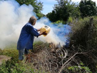 La quema de un predio con palmeras muertas por la plaga del mayate prieto casi se sale de control sobre la carretera Bucerías a Valle de Banderas a la altura del kilómetro 8 donde hay un pequeño rancho de la señora, Margarita Robles, de Las Juntas, Puerto Vallarta, Jalisco. Y aunque se dio a conocer mediante una transmisión en vivo por Noticias Puerto Vallarta, bomberos de Protección Civil de Bahía de Banderas, Nayarit, estos no acudieron y es que el incendio se brincó a la propiedad de esta señora donde una leña que tenía acumulada se empezó a prender.