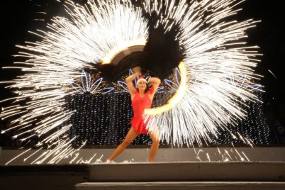 Posteriormente, el alcalde acompañado por su esposa e hijas, así como autoridades municipales, disfrutaron del show de luces navideñas que realizó Prana en el teatro al aire libre Aquiles Serdán (Arcos del Malecón).