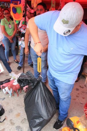 El viernes 20, en recorrido por San Juan de Abajo, fueron ubicados en el tianguis, puestos con venta de estos peligrosos artículos, asegurando la mercancía, levantando el acta correspondiente y dando recomendaciones a dueños de puestos, para que se abstengan de comerciar este material prohibido.