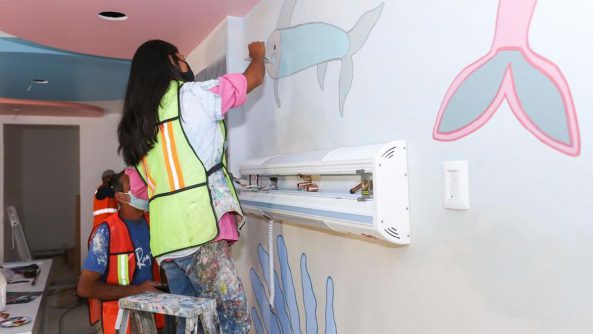 Se rehabilita también el área de Cuidados Intensivos Neonatales, para una capacidad total de 11 camas y un aislado, así como el área de crecimiento y desarrollo; se realiza la remodelación del comedor y la cocina, en donde el primer piso será para estos espacios, el segundo piso para los cuartos de estancia de los médicos internos de pregrado, y el tercer nivel para los médicos residentes que apoyan con su servicio social.