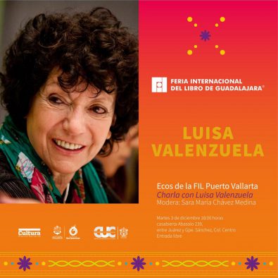 La funcionaria indicó que en esta edición se tendrá la presencia de cuatro autores que vinculan la ciencia y la juventud en sus trabajos, tal es el caso de la escritora argentina Luisa Valenzuela, premio Carlos Fuentes 2019, que cuenta con 50 años ininterrumpidos en la literatura, ha publicado más de 30 libros entre novelas, cuentos, micro-relatos y ensayos. Su obra ha sido dictada en más de 17 países de América, Europa, Asia y Oceanía y traducida a varios idiomas. Ella estará el martes 3 de diciembre a las 18:00 horas, en ‘Casa Abierta’ ubicada en Abasolo 239, colonia Centro de Puerto Vallarta.