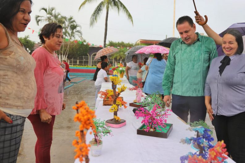 Durante su mensaje, el alcalde bahiabanderense felicitó e invitó a seguir aprendiendo a las ciento un mujeres de las comunidades de San Juan de Abajo, El Colomo, San José, Tapachula, Valle de Banderas y de los Fraccionamientos La Concha y Valle de San José, quienes han desarrollado nuevas habilidades con los cursos de Cojines Decorativos, Sandalias Decoradas, Bolsas Bordadas, Reciclado, Árboles Bonsái.