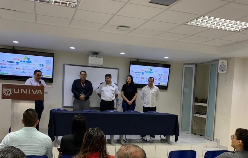 Durante la 35ª reunión mensual de la ANTAD Puerto Vallarta-Bahía de Banderas, celebrada en las instalaciones de la UNIVA, recibieron el reconocimiento el titular de la dependencia, Comisario Jorge Misael López Muro, quien estuvo acompañado por el subdirector René Méndez Vásquez y otros supervisores.