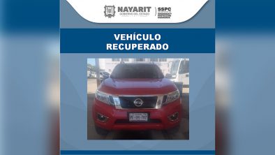 3.-Un vehículo de la marca Nissan, NP 300 Frontier, modelo 2017, color Rojo, con placas de circulación PF-04-787, con reporte de robo, recuperado en el municipio de Bahía de Banderas.