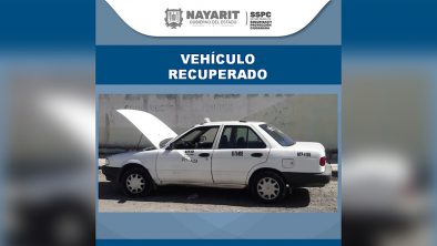 1.-Un vehículo de la marca Tsuru, color blanco, con placas de circulación 83-70-MDE, con reporte de robo, recuperado en la ciudad de Xalisco.