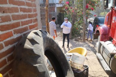 La instrucción del presidente municipal Jaime Cuevas Tello a la coordinación de Salud Municipal, es integrar dos cuadrillas por cada poblado, para cubrir en el menor tiempo posible la recolección de residuos y objetos donde el mosquito puede hacer su criadero, como son tinas, botellas, cubetas, bidones, macetas, floreros, llantas, tinacos, tambos, tubos PVC, comederos para animales, frascos y muebles de baño en desuso.