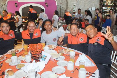 “Quiero felicitar a todas y todos los Bomberos de Puerto Vallarta hoy en su día. Por supuesto que nos sentimos muy orgullosos de todos ustedes. Este Ayuntamiento estará fortaleciendo todavía más esta noble institución, a nuestros héroes anónimos, a nuestros ángeles guardianes que están ahí los 365 días del año cuidándonos”, señaló el primer edil en el marco del desayuno que se ofreció a los homenajeados y sus familias.