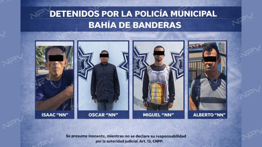 En operativos distintos realizados en el municipio, elementos de la Dirección de Seguridad Ciudadana y Tránsito Municipal de Bahía de Banderas lograron la detención de cuatro personas presuntamente vinculadas con diversos delitos, reforzando así las acciones de vigilancia y combate a la incidencia delictiva en la región.