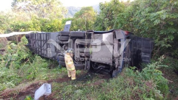 Se trata de un autobús de Tap, el cual volcó y cayó a un barranco