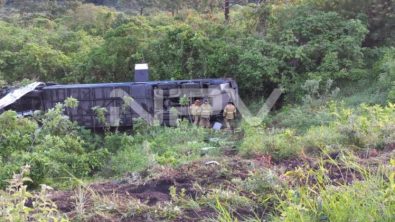 Comunicado.- La Secretaría de Protección Ciudadana del Estado de Nayarit dio a conocer hace unos momentos, que en atención al reporte recibido a la línea de emergencia donde se indicó un autobús que volcó y se fuera a un barranco, en la autopista Tepic – Guadalajara, a la altura del kilómetro 120 aproximadamente.