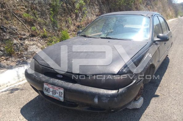Reportantes informaron a NoticiasPV.Com, que se trata de un vehículo de la marca Ford, al parecer tipo, Contour, de color negro, con las placas de circulación MWD-69-12 , del estado de México, el cual tiene unas llaves al interior, entre otras cosas, además de que esta desmantelado del equipo de sonido y de la guantera y no tiene los cuatro neumáticos, pues se aprecia embancado en unos bloques.