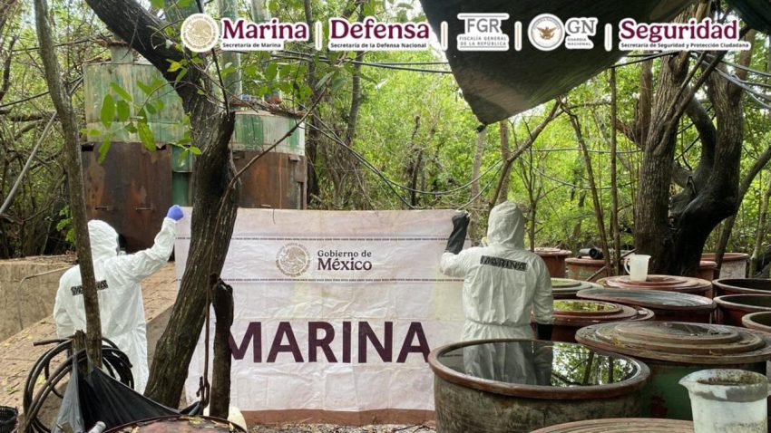 En Boca del Asadero, elementos federales aseguraron más de 12 toneladas de metanfetamina, evitando la producción de 320 millones de dosis y provocando un golpe de 3,481 millones de pesos al crimen organizado.