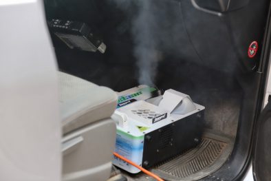 La sanitización se realiza en cada unidad con el equipo Biomist Pro 5000, aplicando aspersión de ácido hipocloroso, que es un compuesto desinfectante antiviral no tóxico, esto por método de vaporización. Se realiza en el interior de la cabina del vehículo con el sistema de ventilación o de aire acondicionado activado, a fin de sanitizar ductos y sistemas, penetrando en tapicerías y superficies de la unidad, realizando también el procedimiento en la caja de las pick-up y superficies de contacto.