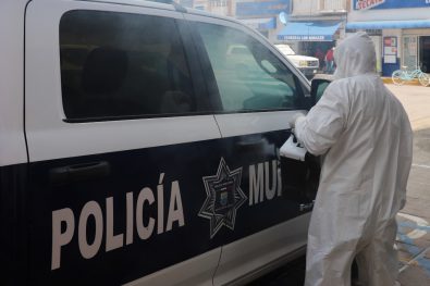Entre las acciones que el presidente municipal de Bahía de Banderas, doctor Jaime Cuevas Tello ha emprendido para mitigar los contagios por COVID-19, entre ellas la sanitización de las oficinas e instalaciones de la Dirección de Seguridad Pública y Tránsito Municipal, así como de todo el gobierno municipal, se realiza un programa contínuo de sanitización de unidades de Seguridad Pública Municipal y de la Policía Vial, protegiendo con ello la salud de los elementos y de quienes son transportados en las patrullas.