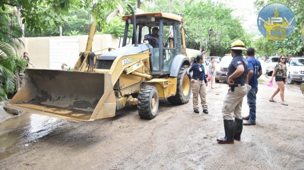 El Ayuntamiento envió maquinaria para el retiro del material. Se espera pronto queden transitables sus calles. Vecinos de Sayulita también informan sobre afectación en algunas viviendas en las que se metió el agua.