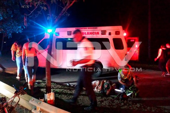 Hasta ese sitio se dirigieron los agentes de la Policía Vial, quienes arribaron al igual que los elementos de Protección Civil y Bomberos de Bahía de Banderas para atender el reporte, percatándose de que ahí se encontraba tirado un masculino que presentaba lesiones delicadas que se causo momentos antes al chocar con una moto contra la barrera de contención.
