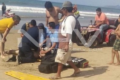 Una persona del sexo masculino que llegó de vacaciones con su familia al municipio de Compostela, murió ahogado en la playa de Guayabitos, luego de haber tenido dificultades para salir del mar, quien fue rescatado de una escollera, pero desafortunadamente ya sin vida.