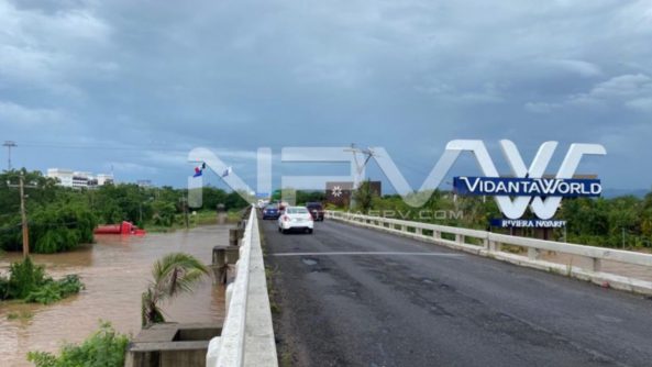 En un recorrido realizado por NoticiasPV.Com, le informamos del desbordamiento en el puente Ameca, donde la creciente arrastra todo lo que este a su alcance, quedando atrapados vehículos pesados propiedad del grupo Vidanta en Jarretaderas, que estaban en la zona donde realizaron excavaciones para la construcción del hotel y otras atracciones de la misma empresa Vidanta.