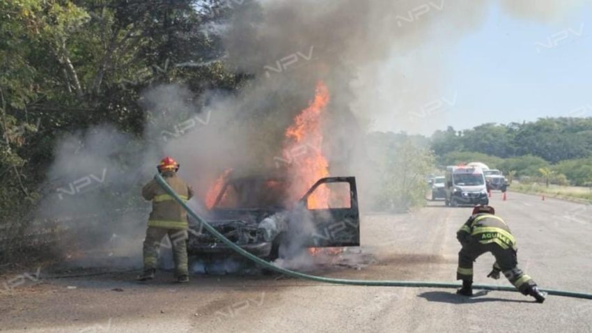 Momentos de tensión se vivieron la tarde de este lunes sobre la carretera que conduce de La Cruz de Huanacaxtle hacia Punta de Mita, luego de que una camioneta comenzara a incendiarse mientras circulaba por la zona.