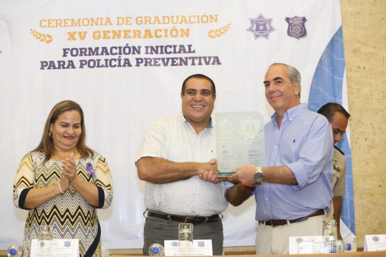 Las filas de la Dirección de Seguridad Ciudadana y Vialidad de Puerto Vallarta, se fortalecen con la integración de 38 elementos que este martes concluyeron oficialmente el Curso de Formación Inicial para Policía Preventiva, quienes fueron reconocidos por el presidente municipal, Arturo Dávalos Peña, por el esfuerzo y entrega mostrados durante la preparación de esta XV Generación, y los exhortó a dar su mayor esfuerzo por esta ciudad y su gente.