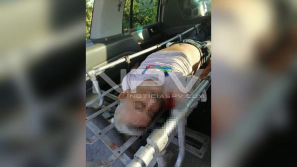 Este auto de alquiler del municipio de Tuxpan, Nayarit, con número económico NTU-0032, se encontraba fuera de la carpeta asfáltica recostado sobre su lado derecho dentro del estero y a un lado estaba la persona sin vida aproximadamente a 5 metros del taxi, mismo que vestia pantalón azul marino de mezclilla, playera blanca y huaraches de cuero.