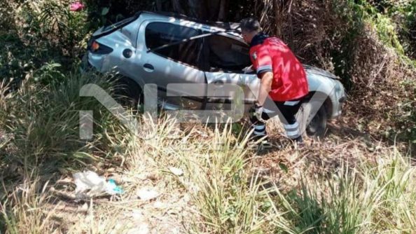 La fémina quedó prensada en su auto compacto, con el que chocó contra una palmera luego de perder el control y salirse de la carretera en el tramo de las Varas y Chacala