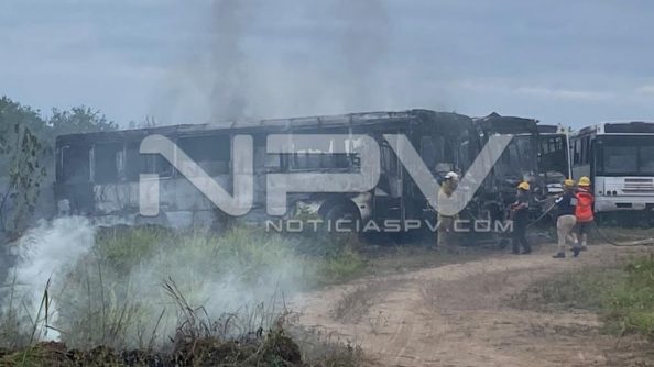 Fueron cuatro unidades de Transportes Turísticos Flamingos los que ardieron en llamas, luego de que provocaron un incendio de pastizal en un lote baldío