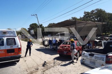 Dos vehículos chocaron por alcance sobre la carretera a San Vicente, cerca del crucero de Mezcales, donde resultaron cuantiosos daños materiales y un hombre y una mujer lesionados, quienes fueron auxiliados por Paramédicos y Bomberos, tomando nota los agentes de Tránsito Municipal.