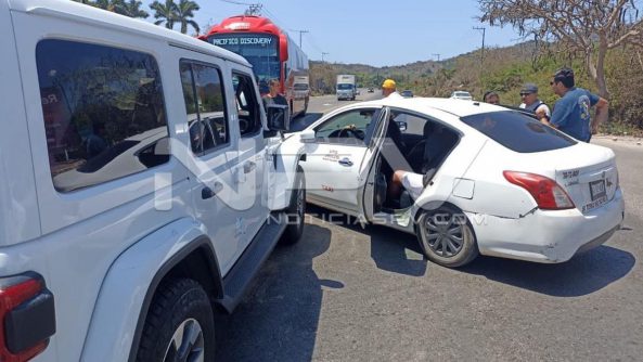 Comunicado.- En atención a un reporte recibido a la línea de emergencias 9-1-1, donde se mencionara un accidente automovilístico, con dos vehículos involucrados, en la carretera Federal 200, a la altura del poblado Los Ayala, del municipio de Compostela, fueron alertadas las autoridades y los cuerpos de auxilio.
