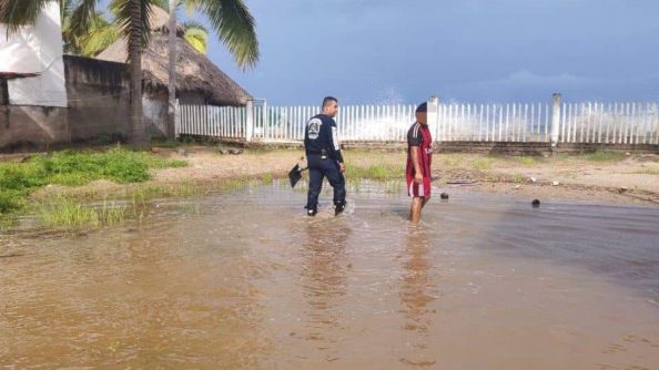 Comunicado.-El Gobierno del Estado de Nayarit a través de la base regional de Guayabitos de Bombero de Nayarit, brindan apoyo ciudadano a vecinos de la colonia Pescadores, donde viviendas resultaran afectadas por el oleaje elevado en la localidad de La Peñita de Jaltemba del municipio de Compostela.