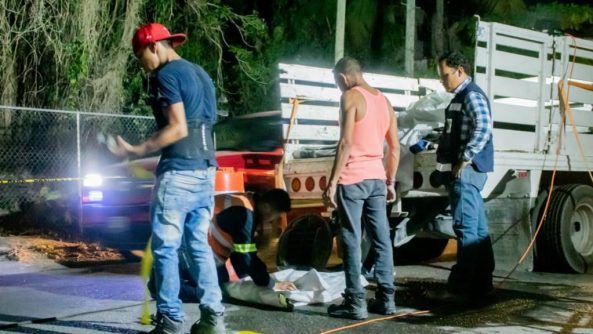 Las tareas para rehabilitar 200 metros de tubería de drenaje sanitario, se realizaron en diversas sesiones nocturnas, además de tareas previas en las que se limpió y desazolvó la línea con el uso de camiones de alta dinámica y alto vacío.