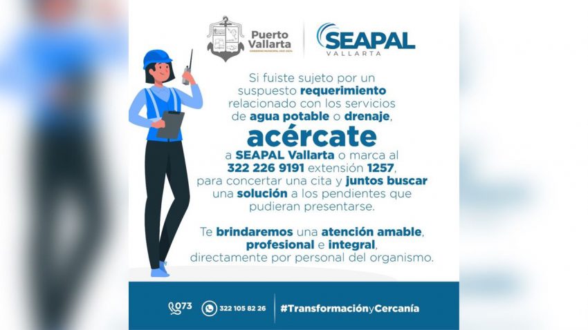SEAPAL Vallarta invita a los usuarios que fueron sujetos a algún supuesto requerimiento por el organismo operador, a acercarse con la finalidad de encontrar juntos una solución a los pendientes y problemática que presentan.