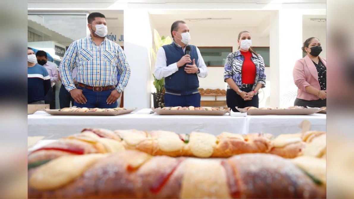 Acompañado por su esposa, la Presidenta del Sistema Municipal DIF, LTS Ana Esperanza Berumen de Cuevas, reafirmó que nuestras tradiciones son identidad y todas ellas tienen significado, “La Rosca en sí, simboliza la protección que brindaron sus padres al Niño Dios. Los trozos de fruta seca simbolizan las piedras preciosas en la corona de los Reyes de Oriente. ¿Cómo llevar la tradición a nuestro desempeño en el trabajo y con nuestras familias? Pues siendo solidarios. Así superamos juntos los retos por grandes que sean. La solidaridad y trabajo por quienes más necesitan es parte de la misión con la que estamos comprometidos funcionarios, regidores y el presidente», señaló.