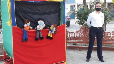 Así mismo la importancia del uso de cubre bocas, sana distancia y uso del gel antibacterial en estos tiempo de pandemia, con una breve sesión de teatrino donde ellos aprenden y se divierten.