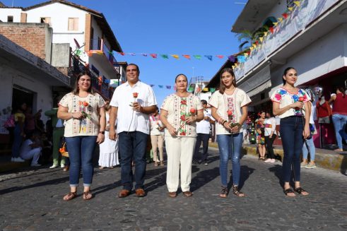 El presidente municipal, Arturo Dávalos Peña y su esposa Candelaria Tovar de Dávalos, presidenta del Sistema DIF, junto a sus hijas, encabezaron el contingente de regidores y funcionarios municipales que organizados en 23 bloques, realizaron el recorrido hasta la iglesia de Guadalupe, muchos de ellos acompañados por sus familias, para dar gracias por los favores recibidos este año, preservando esta tradicional fiesta de los vallartenses.