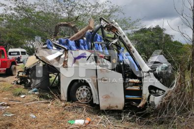El accidente sucedió en el kilómetro 56 de la carretera federal 200 y hasta la mañana de este lunes, el camión destrozado, permanecía a pocos metros de donde se accidentó, siendo custodiado por empleados de una empresa de grúas, que esperan una grúa especial para poder trasladarlo a un corralón.