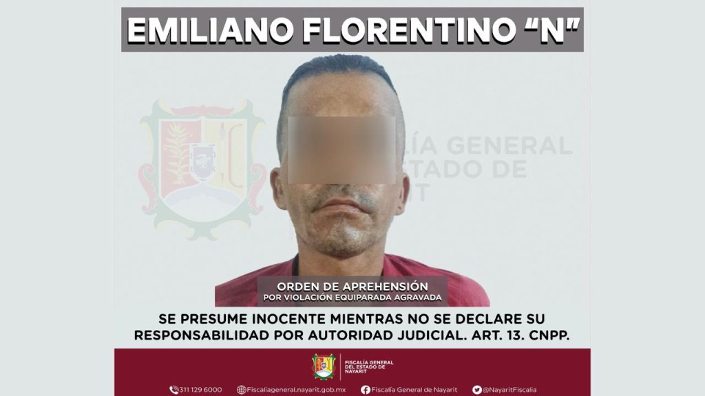 La Fiscalía General del Estado de Nayarit informó sobre la detención de Emiliano Florentino “N” en el municipio de Bahía de Banderas, tras ser señalado como probable responsable del delito de violación equiparada agravada en perjuicio de una menor de edad.