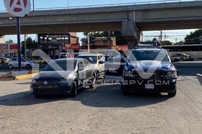Taxi colectivo de la ruta Colomo-Puerto Vallarta, chocó por alcance contra una camioneta familiar, provocando que la misma se impactará contra un auto Jetta, resultando varias personas golpeadas, mismas que fueron revisados en el lugar por los paramédicos de Protección Civil, de los cuáles no hubo necesidad de trasladarlos a algún hospital, ya que sus lesiones fueron menores y no lo ameritaban.