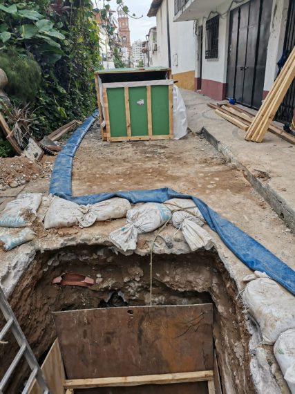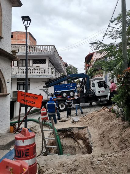 Con el uso de tecnología de vanguardia, SEAPAL Vallarta atiende la rehabilitación de un tramo perteneciente al Colector Centro – Norte, en el cruce de las calles Hidalgo y Corona, en la emblemática colonia Centro de la ciudad.