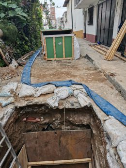 Una vez realizado este proceso, se introdujo un “tren de curado” que genera altas temperaturas a partir de rayos ultravioleta, a fin de acelerar el proceso de endurecimiento, el cual será complementado con la rehabilitación de los pozos de visita y con la construcción de uno nuevo, para que haya una hermeticidad integral.