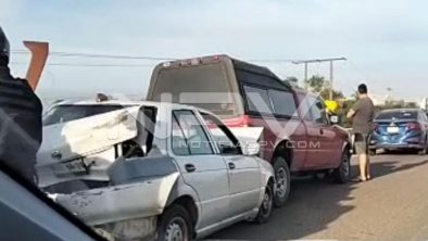 Aparatosa carambola se registró la mañana de este jueves sobre los carriles que llevan de sur a norte, exactamente en el puente Ameca, en la salida a Bahía de Banderas, en donde se vieron involucrados cinco vehículos, uno de los cuales quedó destrozado.