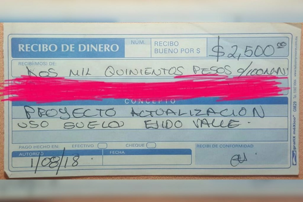 Desde el 2018 por 2500 pesos les prometieron cambio de uso de suelo de sus tierras, fue una gran mentira, desde entonces les han jineteado su dinero
