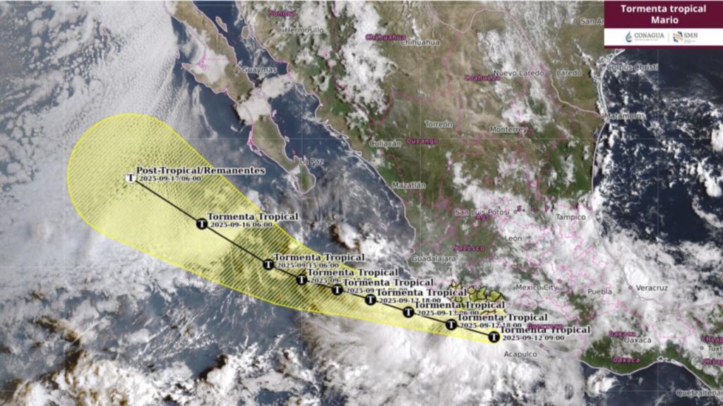 La depresión tropical Trece-E evolucionó a tormenta tropical Mario, generando lluvias muy fuertes, vientos y oleaje elevado que podrían afectar Jalisco y Nayarit durante la tarde de este viernes.