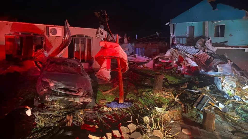 Según la Defensa Civil, el fenómeno, con vientos fuertes, tempestad y granizo, destruyó cerca del 80 por ciento de los inmuebles de Río Bonito do Iguaçu, ciudad de unos 13 mil 500 habitantes y en donde los fuertes vientos destejaron decenas de viviendas y derribaron numerosos árboles y postes del tendido eléctrico.