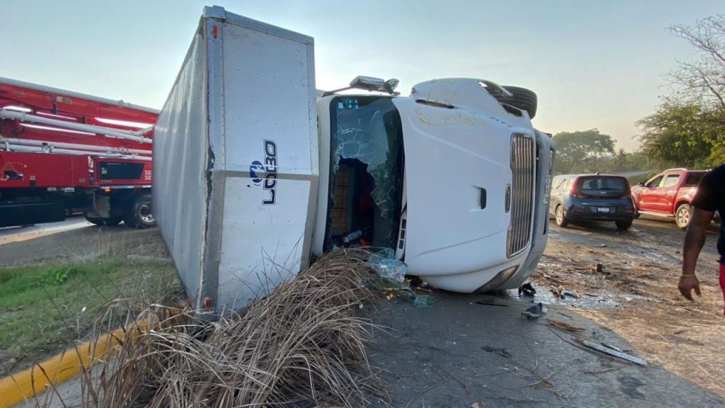 La tarde de este miércoles se registró un aparatoso accidente sobre el boulevard Riviera Nayarit, a la altura de Jarretaderas, luego de que un camión tipo torton cargado con abarrotes volcara tras sufrir una falla en el sistema de frenos.