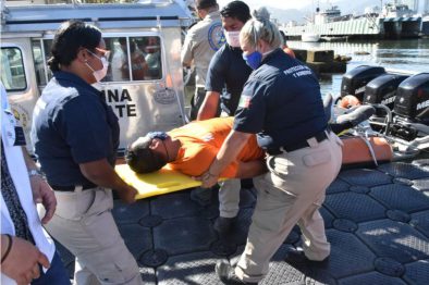 Por parte del Gobierno de Bahía de Banderas, participan Seguridad Pública, Tránsito, Protección Civil y Bomberos, en actividades de homologación de procedimientos, capacitación para movilizar a pacientes con posible contagio de COVID 19, protocolos de seguridad, uso de Equipo, sanitización del personal y vehículos de emergencia, movilización por mar con el equipo de búsqueda y rescate de la Secretaría de Marina, entre otras tareas.