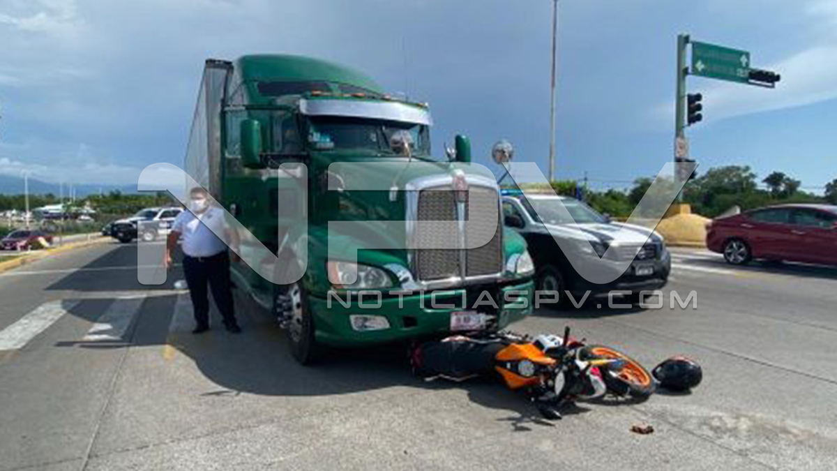 Trailer atropelló a un motociclista en semáforos de plaza Lago Real
